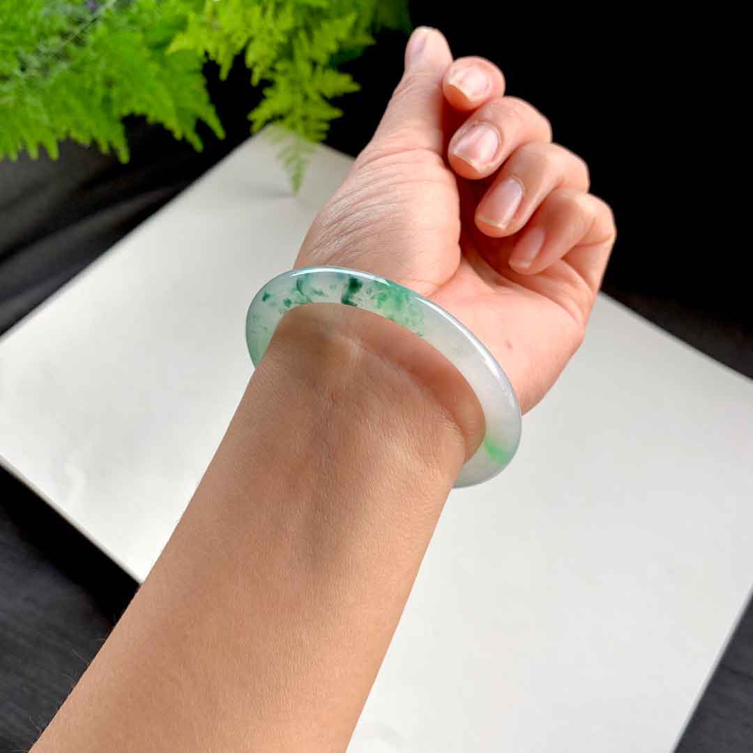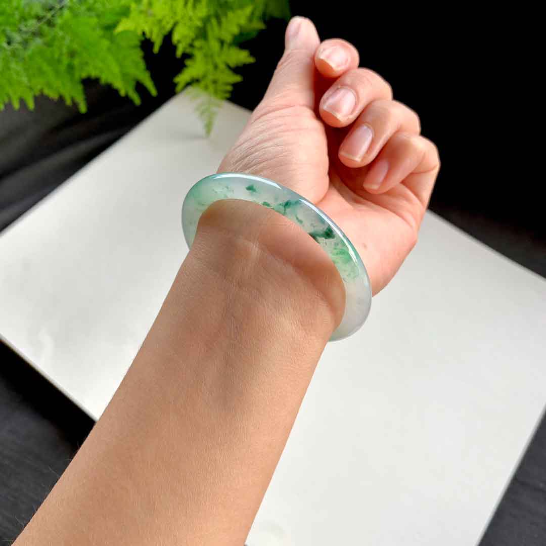 【手镯】圆条51 52 【圈口】51.1-5.8-7 【价格】3.2万 【编码】32779NJM 【描述】阳绿,水润,种老,无纹裂