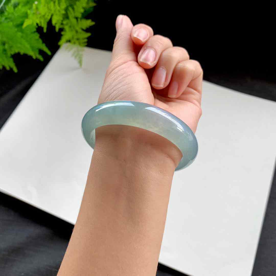 【手镯】正圈56 57 【圈口】56.2-13.6-7.8 【价格】6.4万 【编码】32747KCW 【描述】冰种湖水绿,水润,种老,无纹裂